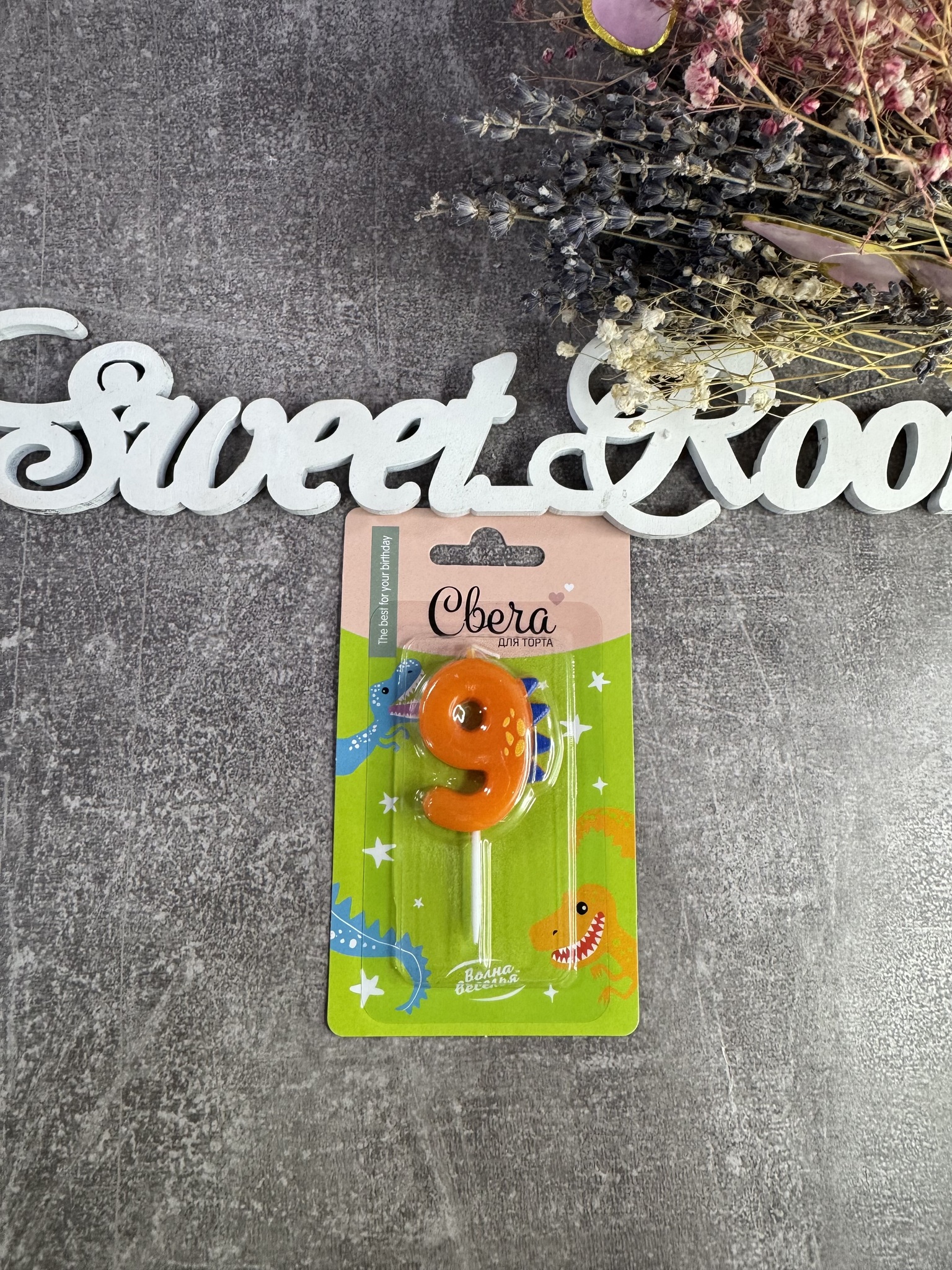 Свеча цифра 9 "Динозаврик" 3.5х4,5 + 2,5 см 1шт с держателем