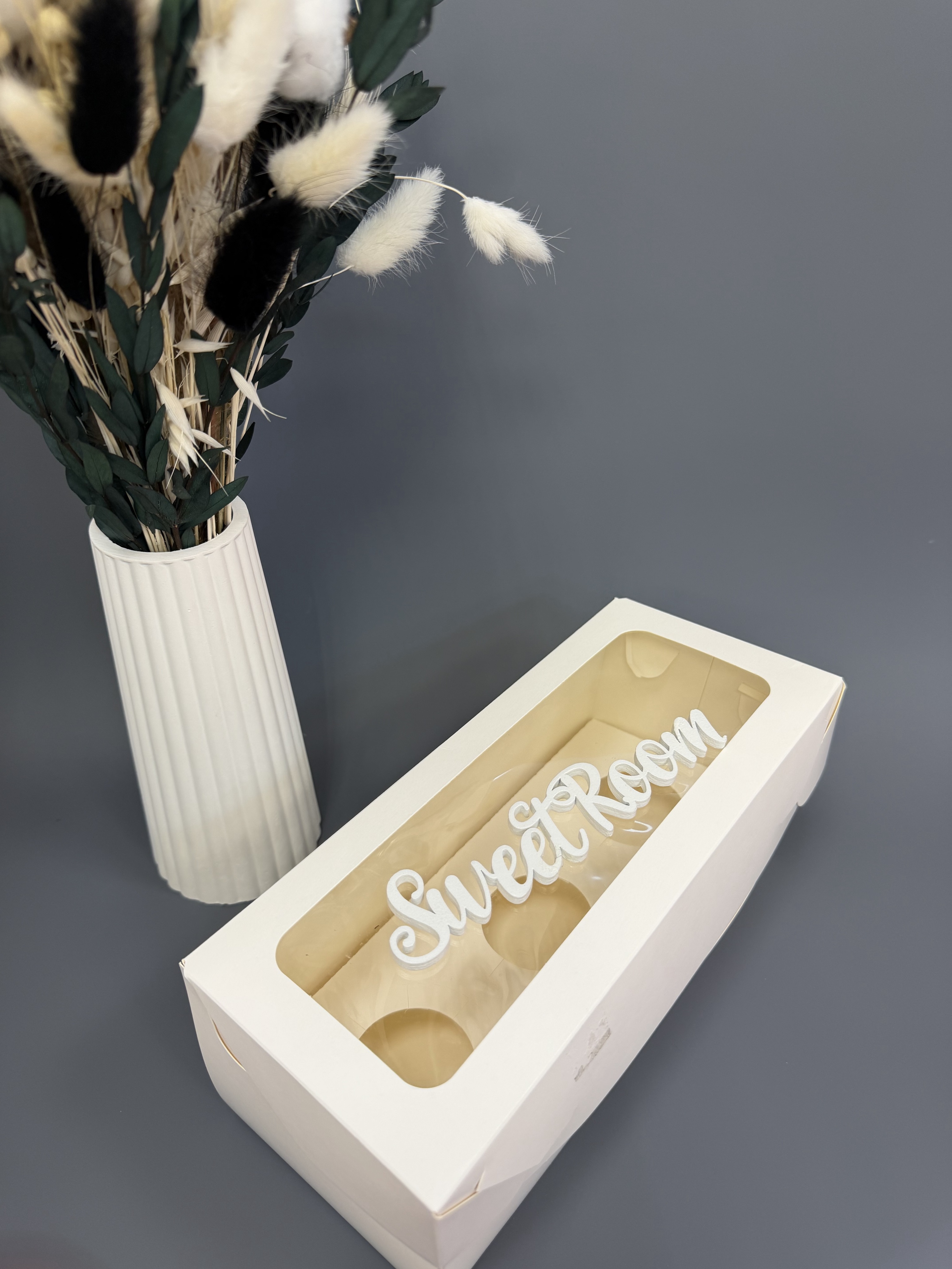 Коробка для 3 капкейков с прямоуг окном и лож белая 24х10х10