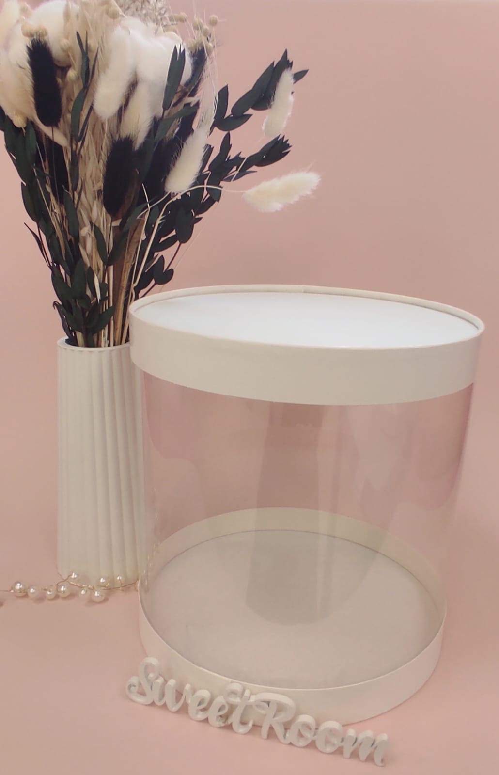 Коробка для торта белая прозрачная тубус диам. 200мм выс. 200мм