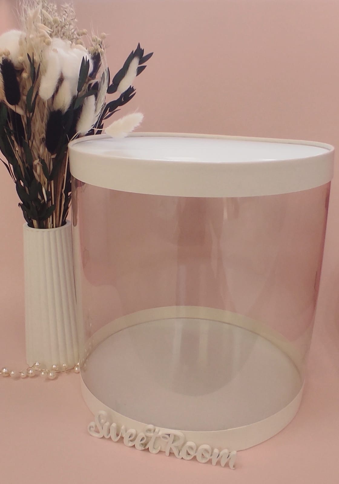 Коробка для торта тубус шляпная прозрачная диам.260мм выс.260мм (белая)