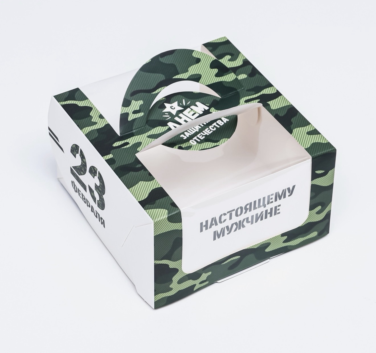 Коробка под бенто - торт с окном «Настоящему мужчине, 23 февраля», 14×14×8 см