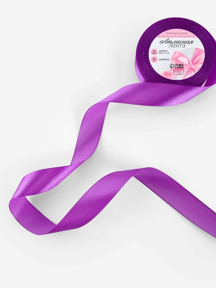 Лента атласная, 25 мм × 33 ± 2 м, цвет фиолетовый №082