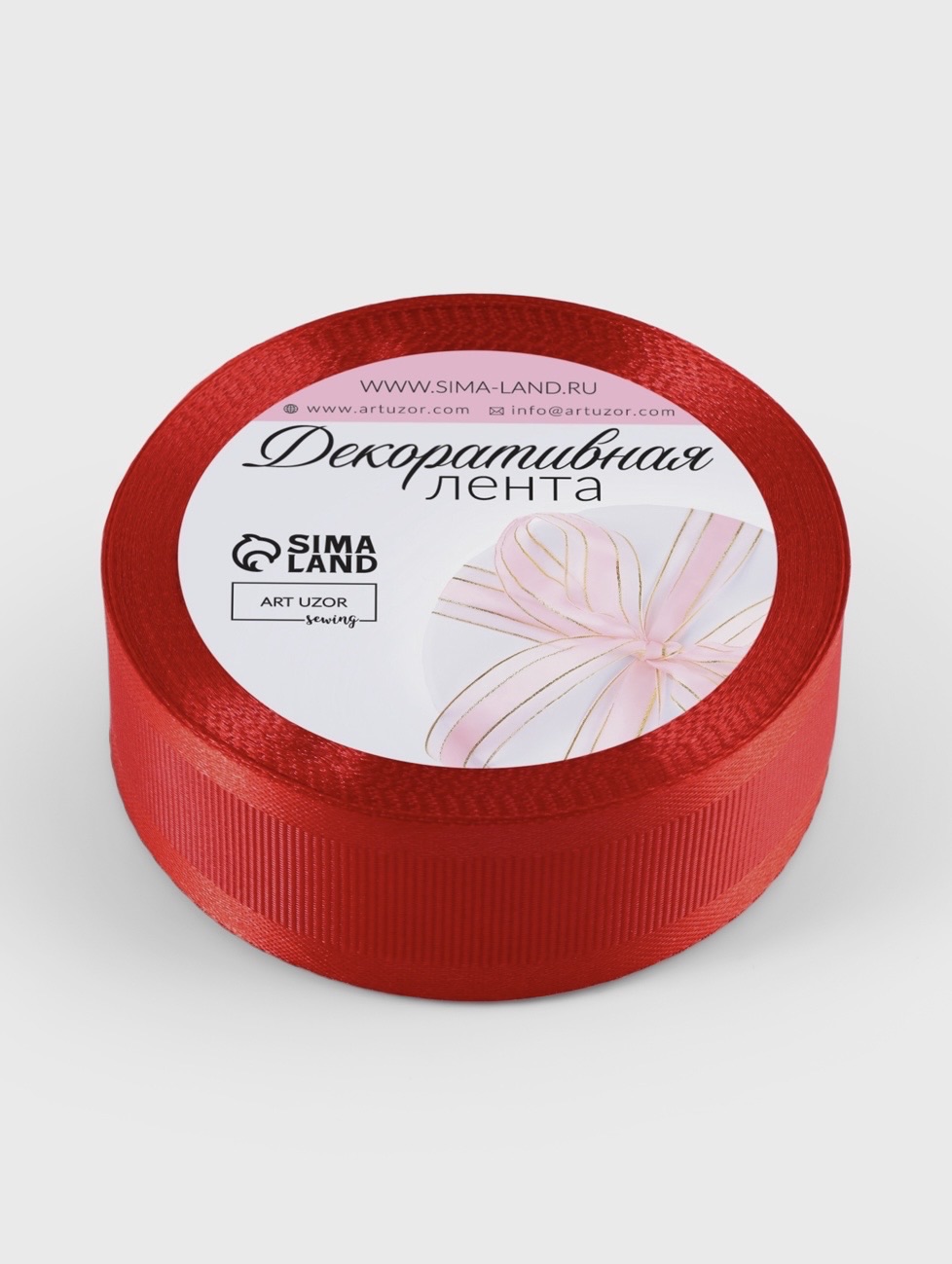 Лента декоративная, репсовая/атласная, 25 мм, 9.1 ± 0.5 м, красная №26