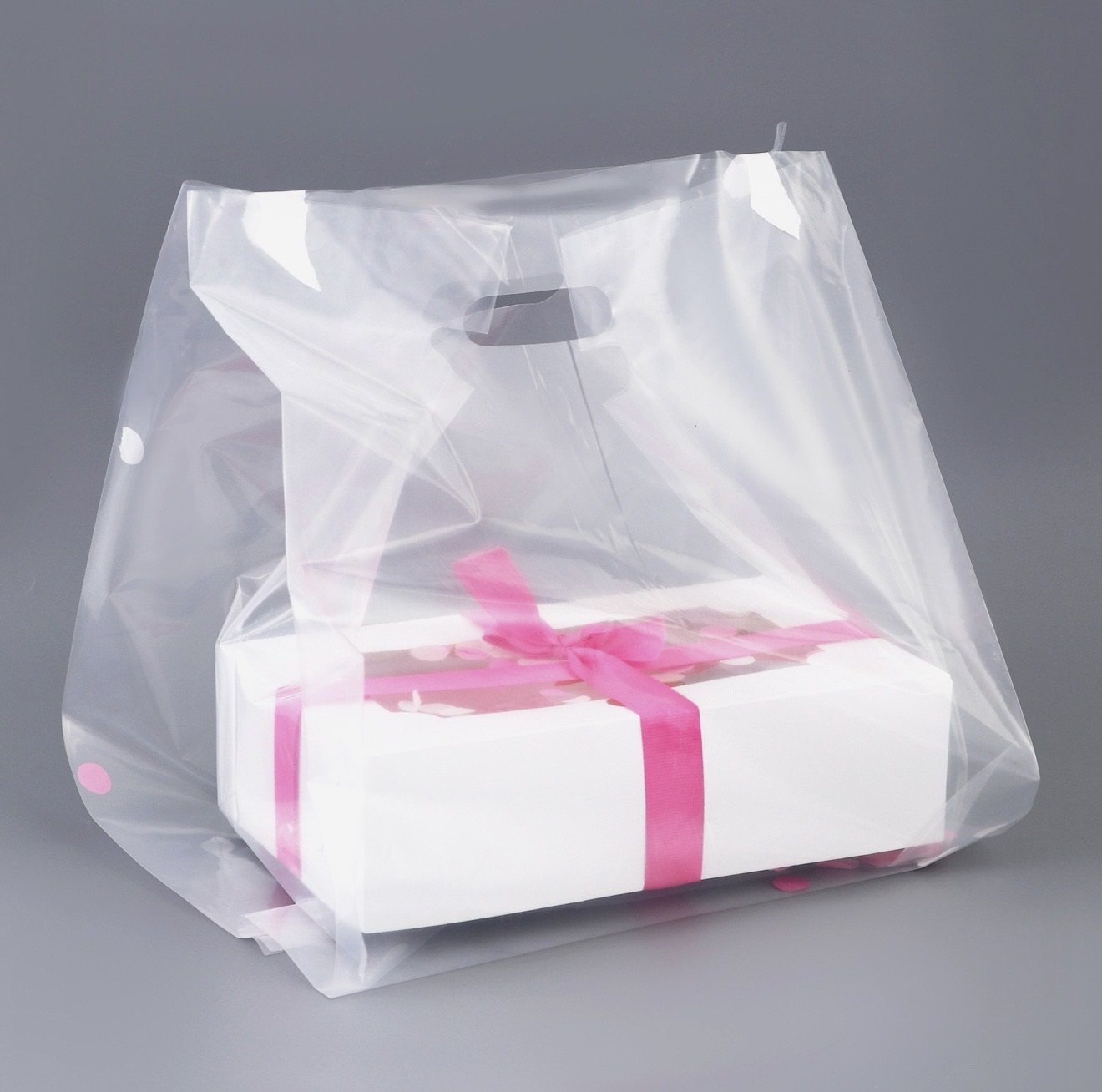 Пакет квадратный полиэтиленовый с вырубной ручкой, упаковка, прозрачный, 30×43+28 см ±5% 60 мкм