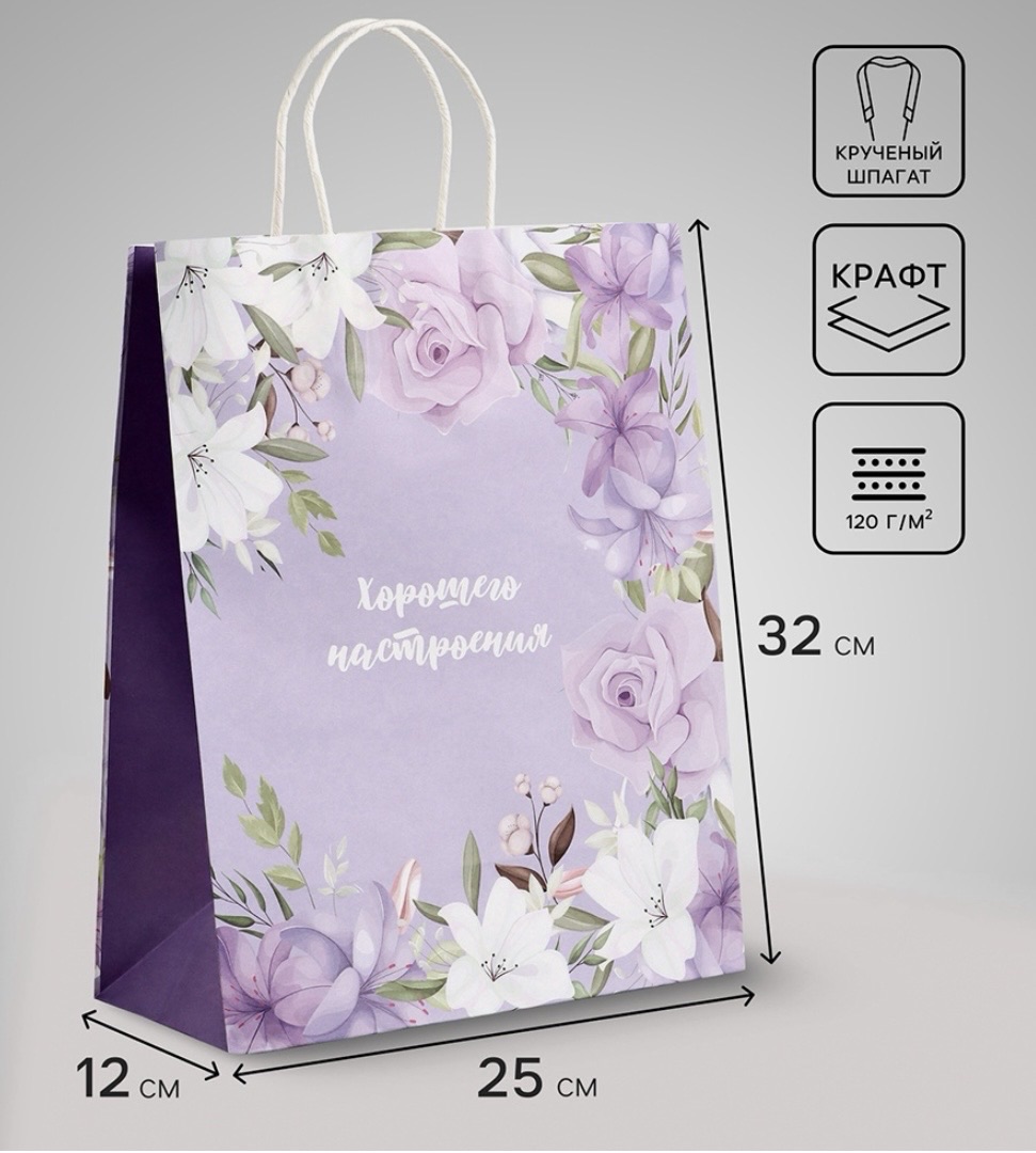Пакет подарочный крафтовый «Хорошего настроения», 32×28×15 см