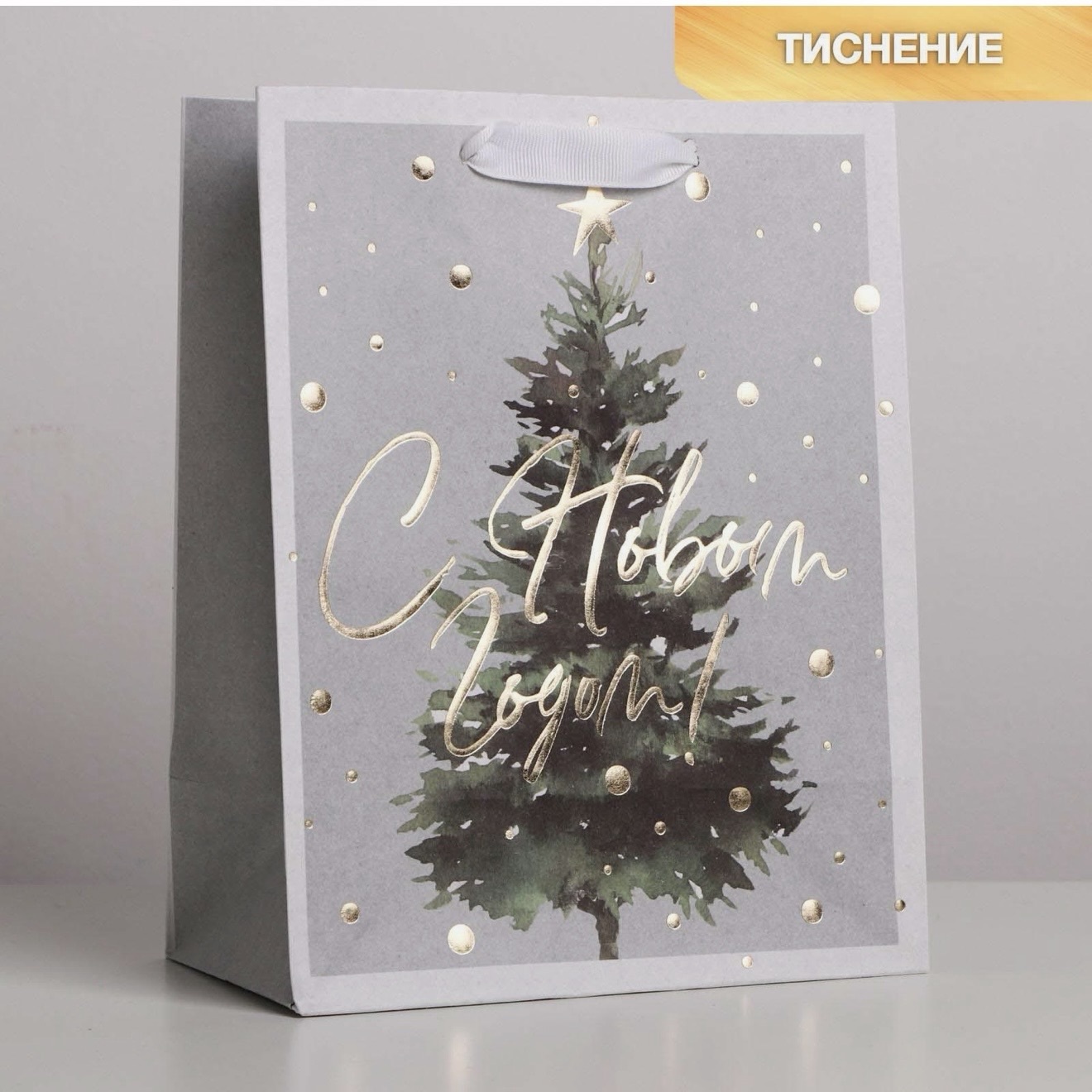 Пакет подарочный новогодний крафтовый «Сказочная ёлочка», MS 18×23×10 см