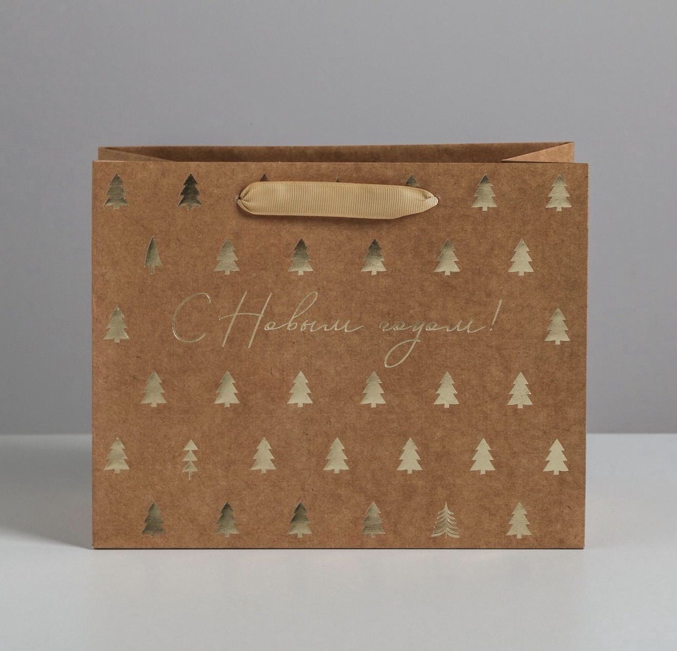 Пакет подарочный новогодний крафтовый «Ёлочки», MS 23×18×10 сми