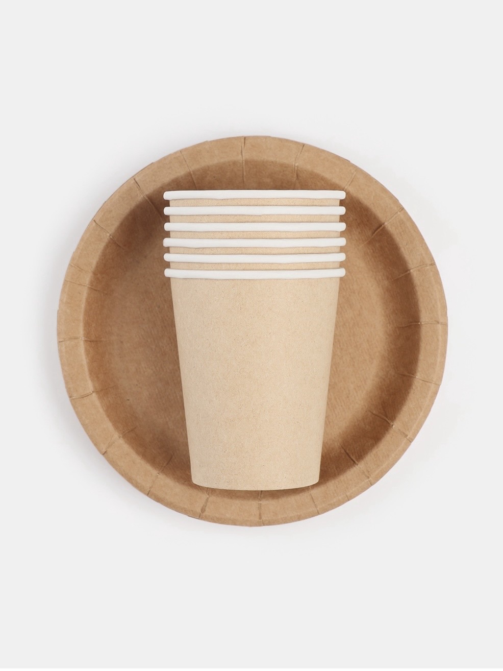 Посуда бумажная одноразовая «Крафт», 6 стаканов, 6 тарелок