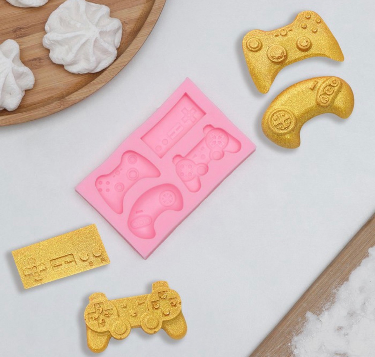 Силиконовый молд Доляна «Джойстики», 10×6×1,4 см, 4 ячейки, цвет розовый