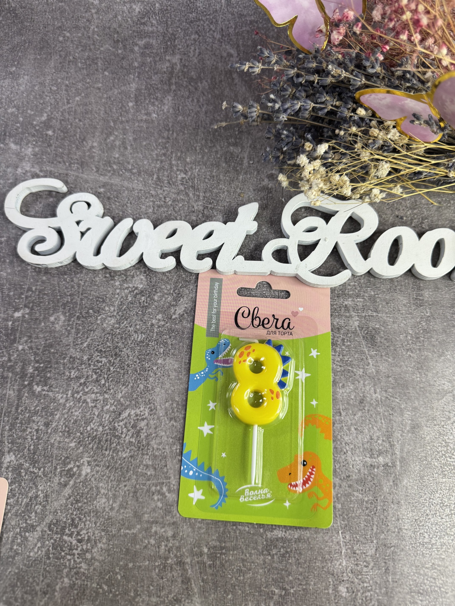 Свеча цифра 8 "Динозаврик" 3.5х4,5 + 2,5 см 1шт с держателем