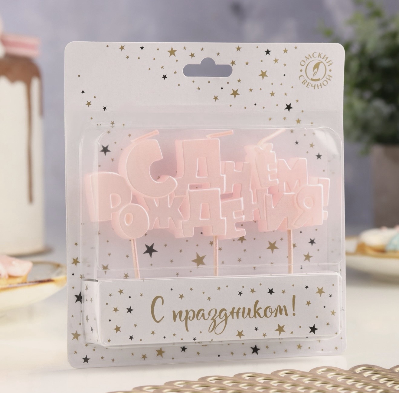 Свеча в торт на шпажках «С Днем рождения», розовая, 5.3 см