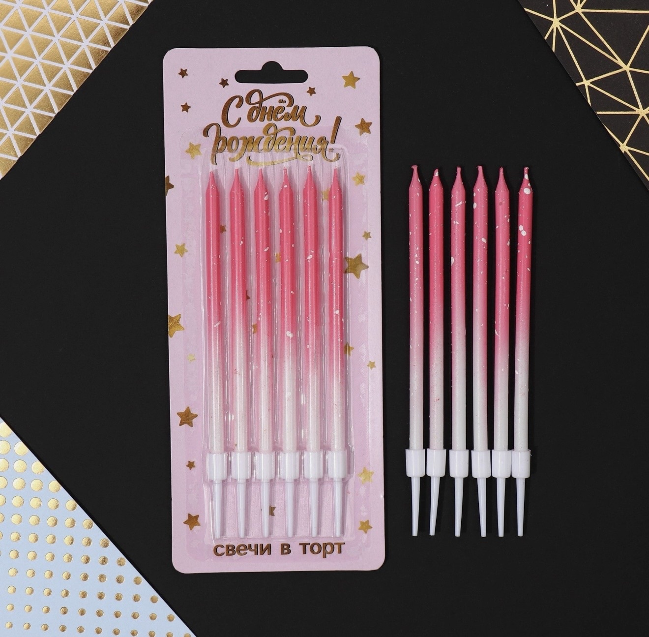 Свечи для торта с блестками, розовый, 6 шт., 13×0.4 см