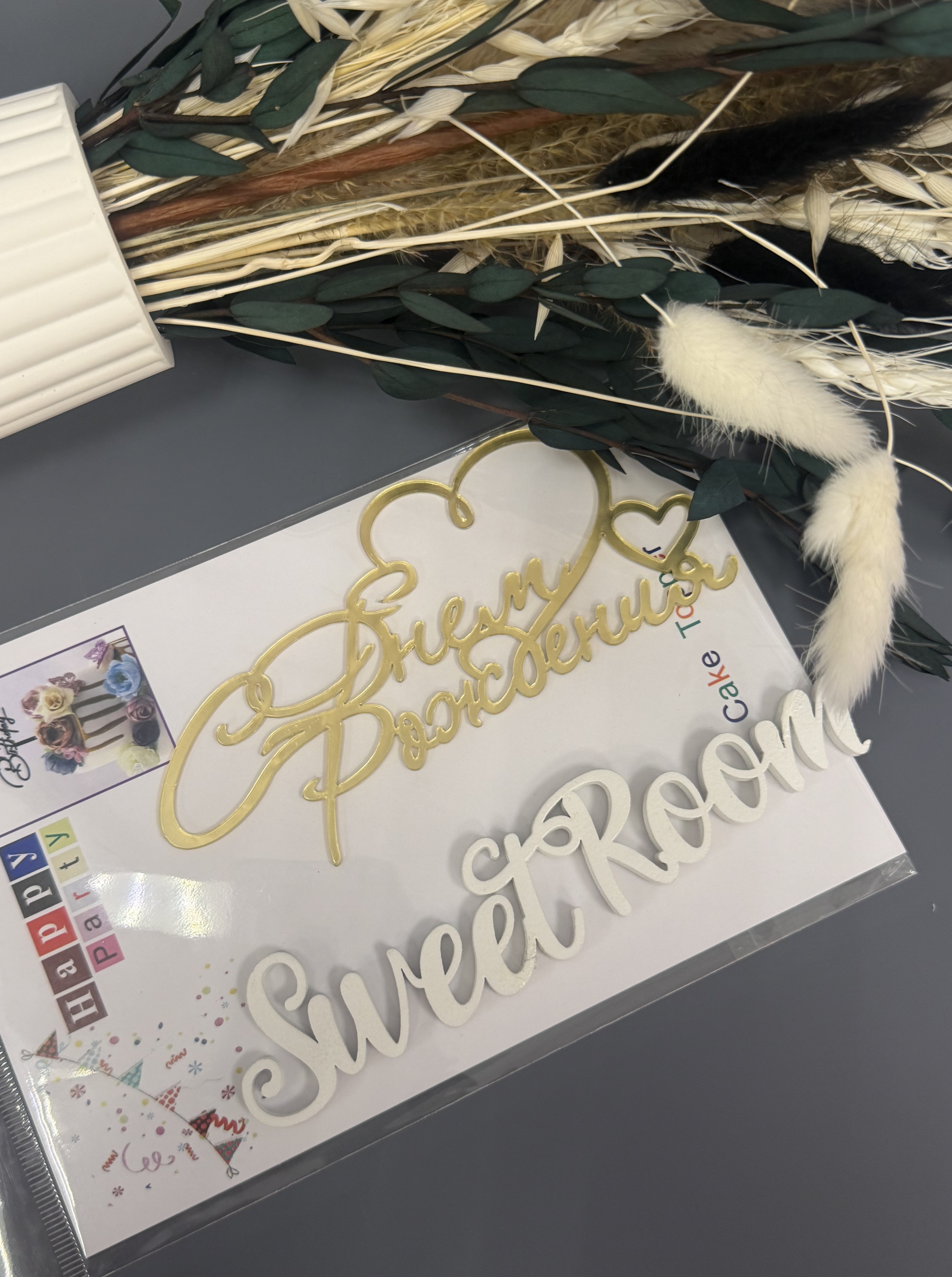 Топпер боковой "С Днем рождения двойное сердце" золотой