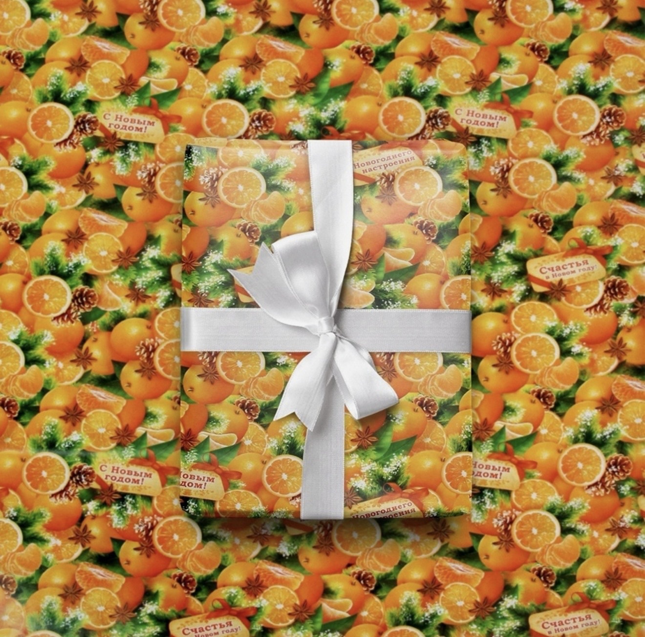Упаковочная бумага на Новый год «Мандарины», 70×100 см, глянцевая